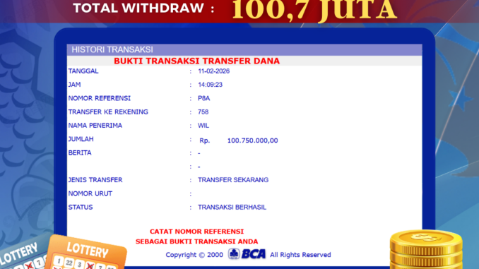 Bukti transfer yang dapat anda lihat adalah bukti SAH / VALID yang langsung di dapatkan melalui bukti transaksi dari Bank yang digunakan untuk pengiriman dana pada rekening pemilik user id. Terima kasih kami sampaikan kepada para pengguna setia BOLAGILA yang telah menggunakan situs kami, sebagai Bandar Terpercaya yang pastinya membayar semua kemenangan member hingga lunas. Apakah BOLAGILA PENIPU ? Reputasi “BOLAGILA TERPERCAYA” sudah sangat melekat.